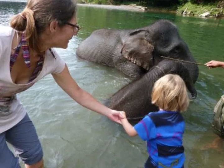 23-25 Juli Tangkahan - Baden mit einem Elefanten