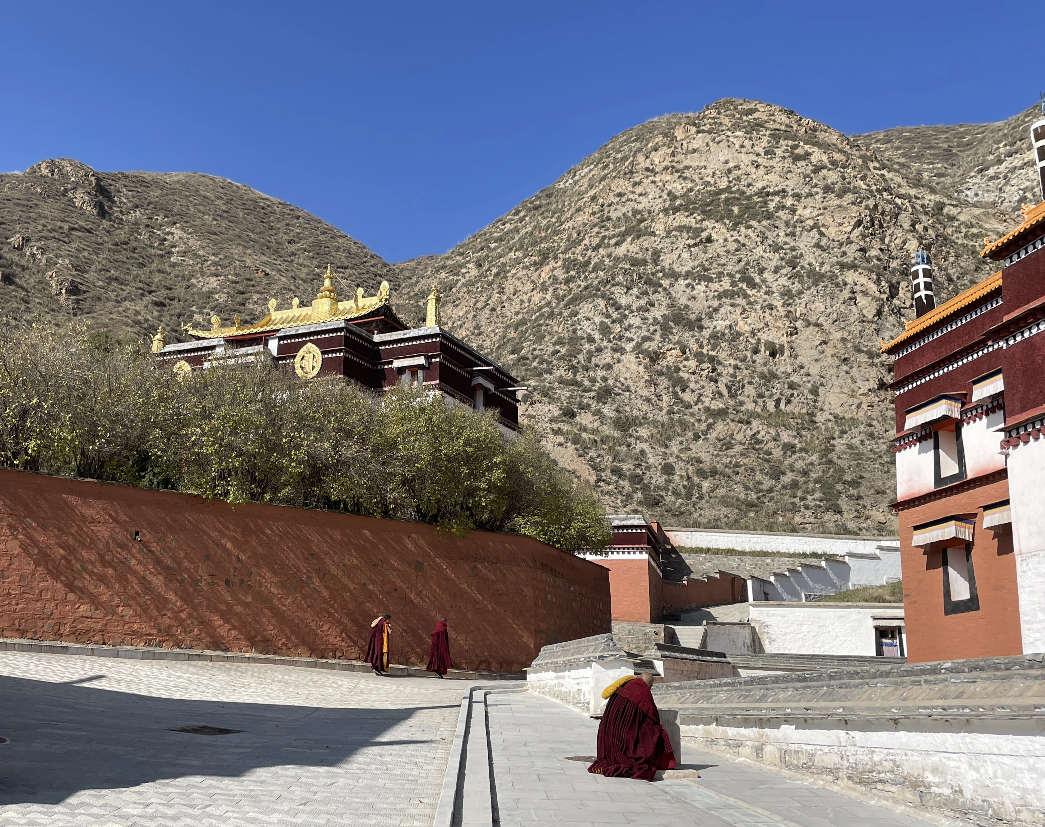 Wir fahren weiter nach Xiahe, genauer gesagt nach Labrang, auf etwa 3.000 Metern Höhe im Amdo-Gebiet. Die Stadt wächst, wirkt für mich aber immer noch ruhig. In Xiahe befindet sich das Labrang-Kloster, das größte Kloster außerhalb Tibets und schon für sich genommen ein echtes Highlight. Etwa 2.000 Mönche studieren und leben hier.