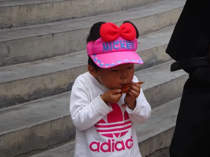 Am Nachmittag wird die Ruhe kurzzeitig durch Menschenmassen, hauptsächlich chinesische, Touristen unterbrochen, die sich in einer Stunde durch den Souvenirmarkt drängen, um danach schnell mit dem Reisebus wieder in Richtung Guilin zu fahren.