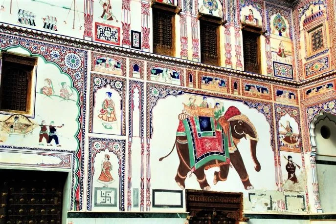 Nach dem Frühstück fahren Sie nach Mandawa, das in der ländlichen Region Shekhawati im Norden des Bundesstaates Rajasthan liegt. Diese Gegend ist in ganz Indien bekannt für ihre vielen wunderschönen Fresken, die insbesondere zwischen 1800 und 1930 angebracht wurden. Shekhawati lag seit Jahrhunderten an der Kreuzung mehrerer wichtiger Handelsrouten und erlebte dank der langstreckenden Karawanen eine große wirtschaftliche Blüte. Als die Briten jedoch 1803 Handels- und Zollsteuern anfingen zu erheben, verließen viele Händler Shekhawati, um sich dem zu entziehen. Viele von ihnen waren dabei besonders erfolgreich. Ein nicht unwesentlicher Teil ihrer Gewinne wurde in ihre Geburtsorte investiert, wo sie prächtige Herrenhäuser mit Innenhöfen (Havelis) erbauen ließen. In der Regel blieben die Händler selbst woanders wohnen, während die Kaufmannshäuser von ihren Familien genutzt wurden. Im Laufe des 19. Jahrhunderts wurde es Mode, die Havelis mit Fresken zu schmücken. Anfangs waren es vor allem mythologische Darstellungen und Illustrationen lokaler Legenden, später handelte es sich zunehmend um Szenen aus dem täglichen Leben. Im Bestreben der reisenden Händler, „modern“ zu sein, wurden sogar Gemälde von Zügen, Schiffen, Telefone und weißen Frauen geschaffen. Aufgrund der vielen Fresken wird Shekhawati auch als die „Freiluftkunstgalerie von Rajasthan“ bezeichnet.