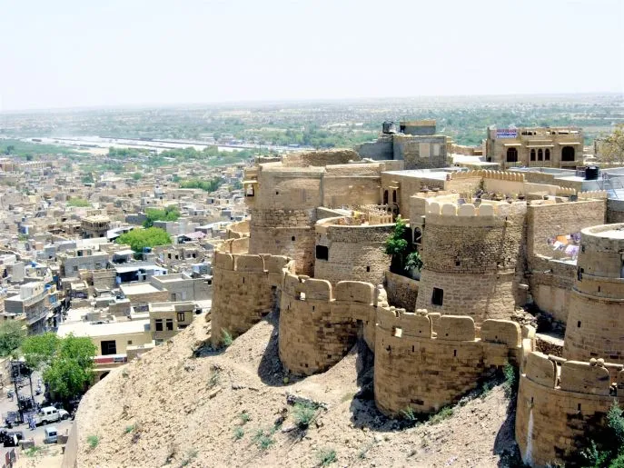 Jaisalmer wurde 1156 von Rao Jaisal gegründet und blieb über Jahrhunderte hinweg die Hauptstadt eines unbedeutenden Fürstentums, bis es zu einem Halt auf der Karavanenroute zwischen Marwar und Sindh wurde. Der Reichtum strömte herein. Adel und Kaufleute errichteten prächtige Paläste, Havelis und Tempel, alle sehr außergewöhnlich aus goldgelbem Sandstein gefertigt. Besonders zur Sonnenauf- und -untergang erstrahlt die gesamte Stadt in einem goldenen Glanz. Daher hat Jaisalmer auch den Beinamen „Goldene Stadt“ erhalten.