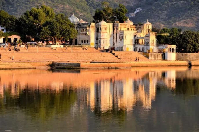 Die Ufer des Pushkar-Sees werden vollständig von nicht weniger als 52 Ghats eingenommen. Es ist verboten, diese Treppen, auf denen täglich religiöse Rituale stattfinden, mit Schuhwerk zu betreten. Besonders früh am Morgen ist es an den Ghats sehr belebt, wenn die vielen Pilger kommen, um im heiligen Wasser zu baden. Touristen sind hierbei nicht immer willkommen. Ihre Anwesenheit wird nur gestattet, wenn Sie die rituellen Handlungen mit dem notwendigen Respekt begegnen.