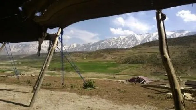 Auf dem Weg zum Berg Kooh Rang durch das Zagros-Gebirge fahren wir eine wunderschöne Strecke von etwa zwei Stunden entlang Wiesen und Feldern mit Obstbäumen und Schäfern. Die Felder rund um Kooh Rang sind der Sommeraufenthalt der Nomadencamps. Dort gibt es auch natürliche Wasserquellen. Wir übernachten in Zelten bei den Bakhtiari. Dies ist das größte Nomadenvolk des Landes. Die freundlichen Bakhtiari leben im Winter in den Ebenen von Khuzestan, aber sobald der erste Schnee zu schmelzen beginnt, ziehen sie zu ihrem traditionellen Sommeraufenthalt. In der Region Kouhrang, rund um das Dorf Chelgerd, stehen Dutzende von Zelten. Überall sehen Sie die Bakhtiari-Männer in ihren typisch schwarz-weiß gestreiften Filzjacken und die Frauen in ihren bunten Röcken. Den Rest des Tages können Sie auf einzigartige Weise das traditionelle Leben dieser Nomaden miterleben.