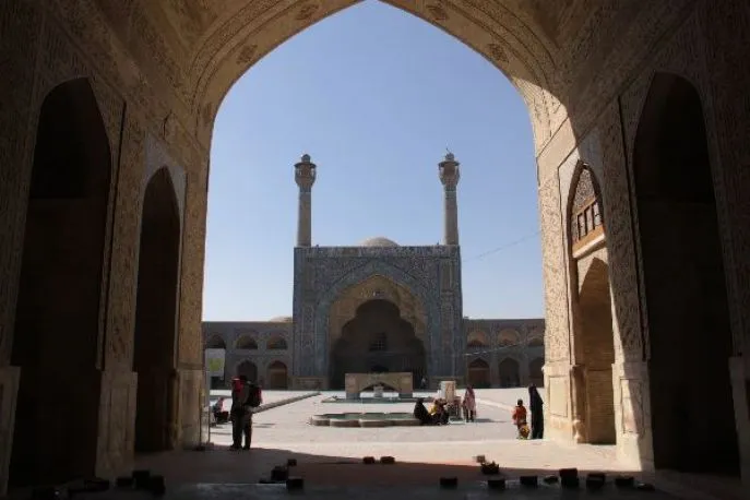 Versteckt zwischen den Straßen liegen einige wunderschöne Moscheen, darunter die Freitagsmoschee und die Masjad-e Mir Chakhmaq. Auf dem Platz finden Sie eines der schönsten „takieh“ des Landes. Dies ist ein Ort, an dem während der Trauerzeit Moharram (dem ersten Monat des islamischen Kalenders) die traditionellen Passionsspiele zu Ehren von Imam Hussein, der einen Märtyrertod in Karbala (Irak) starb, aufgeführt werden.