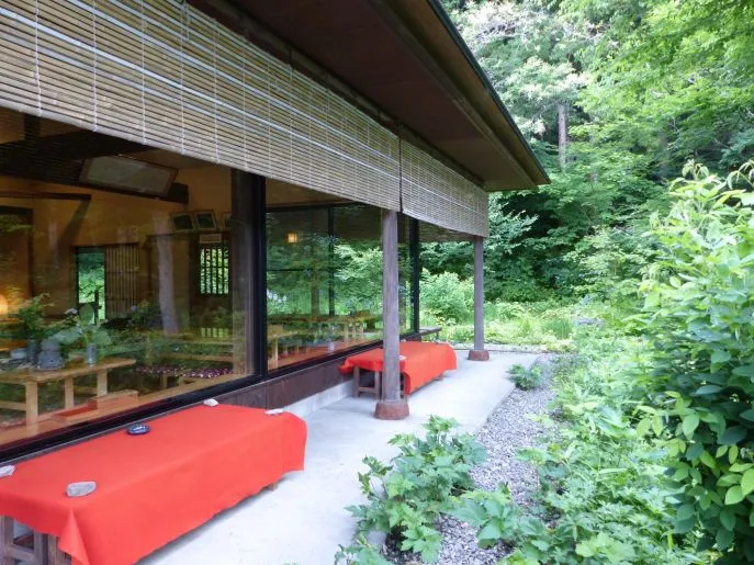 In Kanoe werden Sie ein Abendessen mit Gemüse aus dem eigenen Garten und einigen wilden Berggemüsen, auf die diese Region stolz ist, serviert. Kanoe verfügt außerdem über eine kleine Onsen im Innenraum.