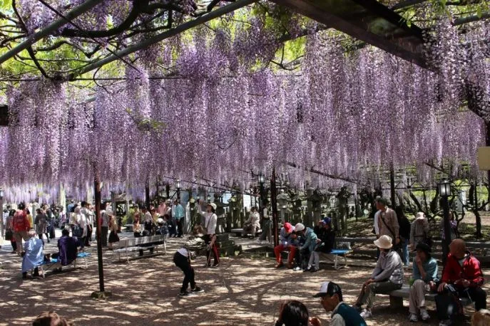 Besuchen Sie im frühen Frühjahr zum Beispiel den Maizuru Park, um die Kirschblüte zu sehen. Zwischen Ende April und Mitte Mai blüht die Blauregen (Wisteria) im Kawachi Park, wo diese grazilen Blüten einen 110 Meter langen Tunnel zieren.