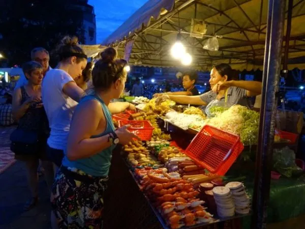Oder machen Sie eine unterhaltsame Streetfood-Tour durch die Stadt! Während dieses spannenden Abend-Ausflugs lernen Sie mit einem englischsprachigen Guide das lokale Streetfood kennen. Er wird Sie gerne mit der kambodschanischen Esskultur bekannt machen und erzählt Ihnen mehr über die Hintergründe der Gerichte und Zutaten. „Essen auf der Straße” ist ein wichtiges Thema in Kambodscha, besonders unter den jungen Leuten. Überall, wo Sie sind und gehen, finden Sie einen Verkäufer mit einem kleinen Essensstand. Die meisten Einheimischen nehmen ihr Essen nicht mit zur Arbeit oder zur Schule, sondern kaufen schnell etwas zwischendurch, also auf der Straße. Verständlich, denn was ist besser als eine frisch (und super schnell) zubereitete Mahlzeit! Eine beliebte lokale „Streetfood”-Delikatesse sind die „Grilled BBQ Pork Skewers”, also gegrillte Schweinefleischspieße, serviert mit Reis und Gemüse. Oder probieren Sie die gedämpften Brötchen gefüllt mit Ei und Schweinefleisch; lecker! Auch Snacks wie frittierte Frösche und/oder Spinnen (wie Roos ohne Zögern probierte) gehören zu den lokalen Spezialitäten. Diese lokale Delikatesse entstand während des grausamen Regimes der Roten Khmer in den 1970er Jahren. Es herrschte Hungersnot, was das Menü der Kambodschaner erheblich beeinflusste. Sie aßen, was sie finden konnten und jagten in den Reisfeldern unter anderem nach Spinnen und Fröschen. Nach dem Krieg blieben diese Snacks auf dem Menü und werden heutzutage „köstlich“ mit verschiedenen Kräutern und Gewürzen zubereitet.