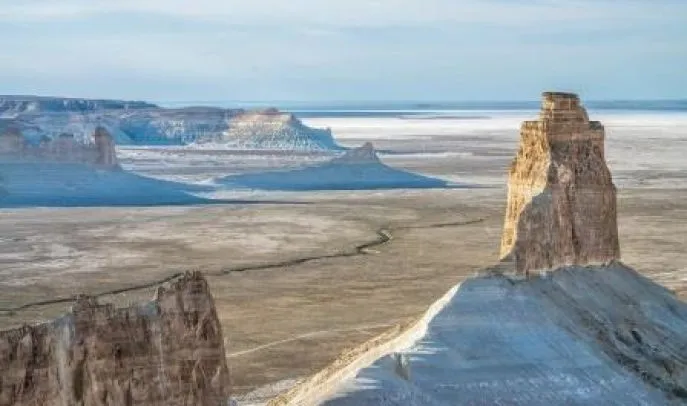 Im Westen Kasachstans, landeinwärts vom Kaspischen Meer, befindet sich die Region Mangystau, gelegen auf dem Ustyurt-Plateau. Ustyurt ist eine riesige Wüste und ein Plateau mit einer Fläche von mehr als 200.000 km² im Westen Zentralasiens (Kasachstan, Turkmenistan und Usbekistan), zwischen Mangyshlak und Kara-Bogaz-Gol im Westen sowie dem Aralsee und dem Amurdarya-Delta im Osten. Das Ustyurt-Plateau bietet atemberaubende Landschaften, die an Mondlandschaften erinnern. Die einzigartige Schönheit dieses Ortes entführt Sie in eine andere Welt. Diese dreitägige Exkursion führt Sie zu den schönsten Landschaften von Mangystau.