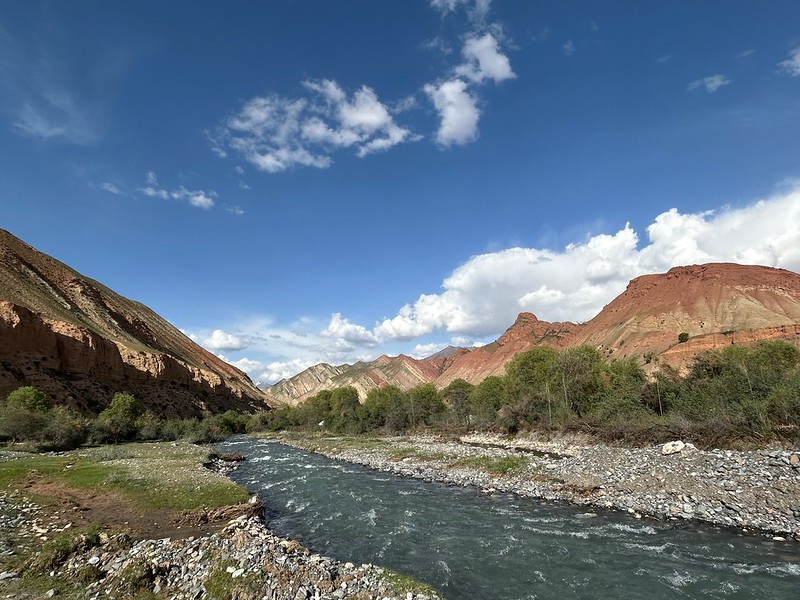 Sie verlassen die Hauptstraße Osh – Bischkek und nehmen die kleine Abzweigung Richtung Kizil Oy. Die Straße ist nun nicht mehr asphaltiert und windet sich durch eine wunderschöne, grüne Berglandschaft. Im charmanten Dorf Kizil Oy übernachten Sie in einem lokalen Homestay, wo Sie die ruhige Umgebung und das authentische Dorfleben genießen können.