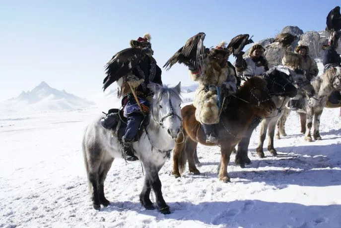 Sie reisen zum nahegelegenen Naturpark Terelj, etwa 65 Kilometer von Ulaanbaatar entfernt. Hier wird heute ein Adlersfestival gefeiert. Normalerweise finden die traditionellen Adlersfestivals im Herbst in der westlichen Region Altai statt. Dort leben die kasachischen Adlerjäger, die mit ihren Königsadlern in die Berge zum Jagen ziehen. In den Wintermonaten kommen einige der kasachischen Jäger nach Terelj, um ihr Können zu zeigen. Obwohl das Festival für die wenigen Touristen ausgerichtet ist, die die winterliche Kälte trotzen, ist es dennoch ein atemberaubendes Erlebnis, diese Adlerjäger bei ihrer Arbeit zu beobachten. Das Festival beginnt mit einer bunten Parade, bei der die stolzen Jäger auf ihren Pferden mit den Adlern auf ihren Armen präsentieren. Danach zeigen sie, wie die Adler jagen, und der beste Jäger wird belohnt. Am Ende des Tages kehren Sie nach Ulaanbaatar zurück.