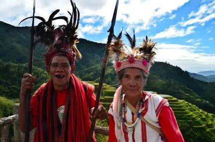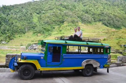 Auf dem Dach des Jeepneys fahre ich zusammen mit meinem Guide zum Ausgangspunkt meiner Trekkingtour, was ein Abenteuer ist! Der Jeepney fährt durch eine atemberaubende Landschaft und entlang steiler Schluchten. Wir wandern zum Dorf Batad, wo ich die kommende Nacht auch übernachte. Hier werde ich herzlich von Ramon (dem Besitzer dieser Homestay) empfangen. Von Batad aus mache ich eine wunderschöne Trekkingtour (recht anstrengendes Aufsteigen) durch die jahrhundertealten Reisterrassen. Mein Guide erzählt viel über diese alten Reisfelder und die Rituale der einheimischen Bevölkerung. Die Menschen hier sind sehr freundlich und die kleinen Männer, die den ganzen Tag Betelnüsse kauen, heißen mich herzlich willkommen. Sie können hier Tage hintereinander durch diese wunderschöne Gegend wandern, leider habe ich nicht so viel Zeit. Am Abend wird ein Huhn für das Abendessen geschlachtet und wir trinken Reiswein am Lagerfeuer, was für ein großartiger Ort!