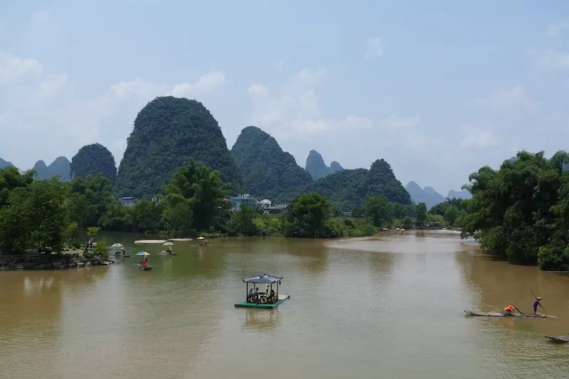 Das Karstgebirge rund um die Stadt Yangshuo bei Guilin in der südlichen Provinz Guangxi lässt sich am besten als Kamelhöcker in einer flachen Flusslandschaft beschreiben, geschmückt mit grünen Reisfeldern. Hier umherzulaufen ist, als würden Sie in einem chinesischen Gemälde spazieren gehen.