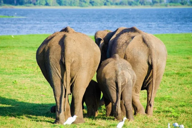 Auch in Asien ist das möglich, und das beste Ziel dafür ist Sri Lanka. Einer der schönsten Nationalparks ist der Minneriya-Park, wo die größten Herden von Elefanten Sri Lankas umherstreifen. Die Elefanten kommen zu den Seen, um zu trinken, und manchmal sehen Sie auf einer Safari bis zu 100 Elefanten. Dazu gesellen sich Hunderte wunderschöner Vögel: Schwarzhalshähnchen, Reiher, Sekretärvögel und viele, viele leuchtend blaue Eisvögel.