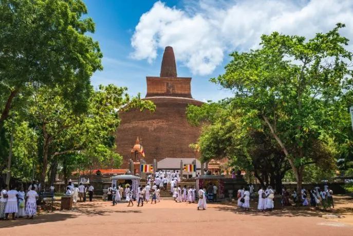 Hier finden Sie unter anderem sehr alte, riesige Stupas, die aus mit weißer Kalkfarbe verputzten Ziegeln erbaut wurden und von Tempeln und Schreinen umgeben sind. Die berühmteste Stupa ist wahrscheinlich die, in der sich das Schlüsselbein von Buddha Sakyamuni aus Nordindien befinden soll. Anuradhapura ist daher ein wichtiger Wallfahrtsort für Buddhisten.