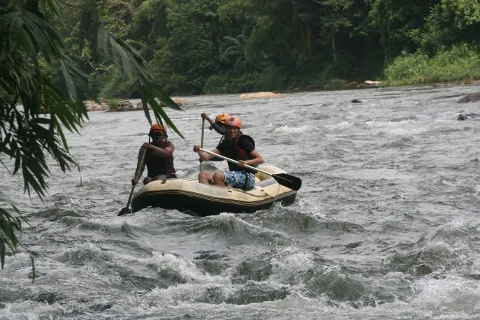Die abenteuerliche Raftingtour dauert etwa anderthalb Stunden, in denen Sie etwa sechs Kilometer den Fluss hinunterfahren. Wildere Abschnitte wechseln sich mit ruhigen Etappen ab, sodass Sie nicht nur die Spannung der Stromschnellen erleben, sondern auch herrlich treiben und die üppige Natur um Sie herum genießen können. Unterwegs begegnen Sie verschiedenen Stromschnellen, aber es bleibt genügend Zeit, um ruhig zu fahren und die exotischen Landschaften auf sich wirken zu lassen. Haben Sie Lust auf ein erfrischendes Bad? An einem ruhigen Abschnitt des Flusses können Sie aus dem Boot springen und sich ein Stück mit der Strömung treiben lassen – immer ein Favorit bei Teenagern.