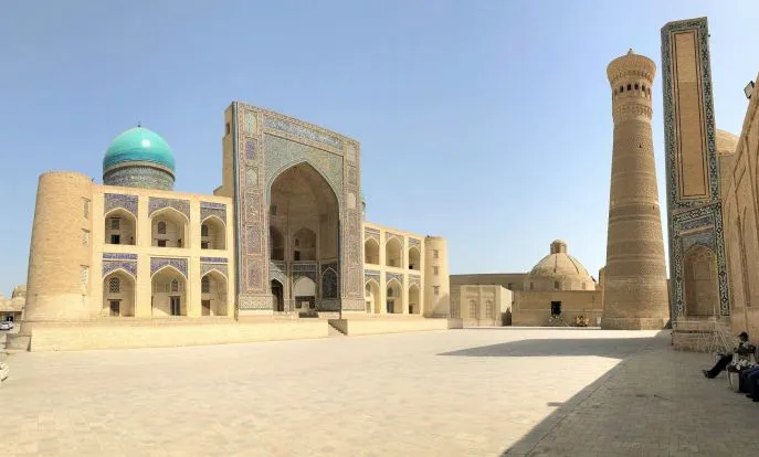 Das Poi Kalyan-Ensemble bildet das religiöse Herz von Buchara. Die Kalyan-Moschee stammt aus dem Jahr 1514 und ist die zweitgrößte in Zentralasien, mit einer Fläche von 127 mal 78 Metern und Platz für 12.000 Gläubige. Gegenüber der Moschee befindet sich die Mir-i-Arab-Madrassa mit zwei auffälligen türkisfarbenen Kuppeln. Nicht weit dahinter liegen die Ulugh Bek-Madrassa und die Abdul Aziz-Madrassa.