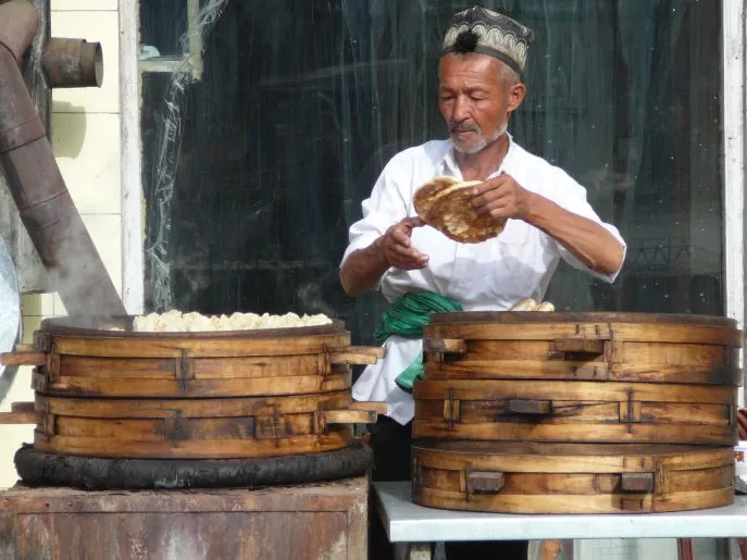 Sobald Sie alle Zollformalitäten abgeschlossen haben, ein recht umfangreicher Prozess an mehreren Zollposten, sind es noch über eine Stunde bis nach Kashgar über eine gute Straße entlang uigurischer Dörfer. In China ist es im Sommer offiziell zwei Stunden und im Winter drei Stunden später als in Kirgisien, aber dies ist Peking-Zeit, und die Uiguren halten ihre eigene Zeit.