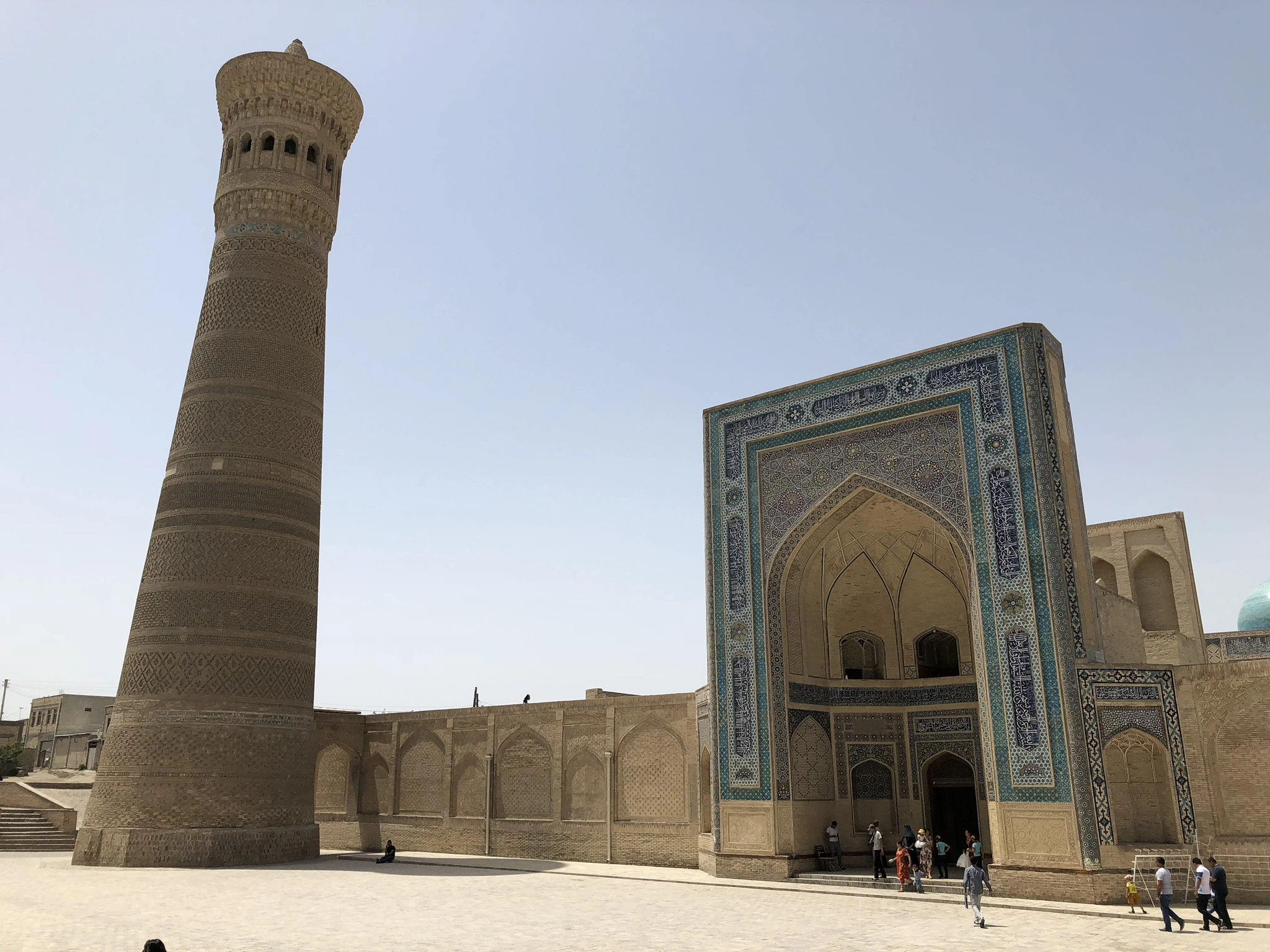 Das religiöse Herz von Buchara bildet das Po-i Kalyan-Ensemble. Die Kalyan-Moschee, erbaut 1514, ist die zweitgrößte Moschee Zentralasiens mit einer Fläche von 127 mal 78 Metern und Platz für 12.000 Gläubige. Gegenüber der Moschee steht die Mir-i-Arab-Medresse mit zwei markanten türkisfarbenen Kuppeln, und dazwischen befindet sich der 48 Meter hohe Kalyan-Minarett. Nicht weit entfernt liegen die Ulugh-Bek-Medresse und die Abdul-Aziz-Medresse mit wunderschönen Mosaiken.