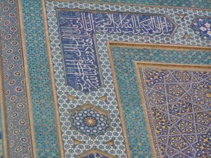Auf einem Hügel am Rand des ehemaligen Afrasiab befindet sich das Ensemble Shah-i-Zinda, geschmückt mit dem prächtigsten Mosaikwerk, das Usbekistan zu bieten hat. Diese Nekropole (Totenstadt) enthält viele wunderschöne Mausoleen.