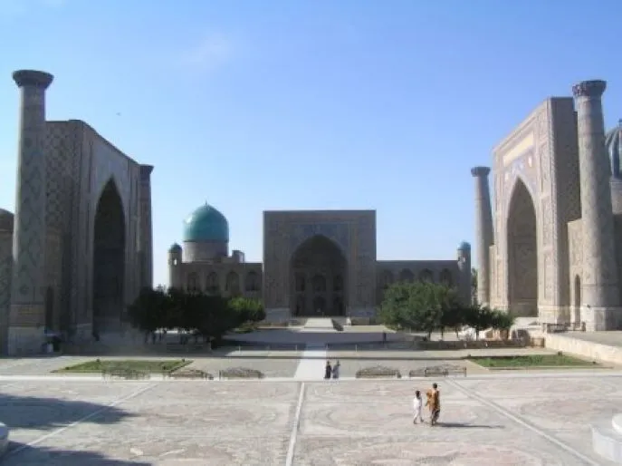 Die monumentalen Bauwerke von Samarkand (400.000 Einwohner, von denen ein großer Teil ethnische Tadschiken sind) sind die eindrucksvollsten Überreste der usbekischen Geschichte. Hier sind die architektonischen Höhepunkte aus der Timuridenzeit zu bewundern. Dies ist eines der ältesten Kulturzentren der Welt, und diese Stadt, deren Name 'fruchtbare Siedlung' bedeutet, hat immer eine bedeutende Rolle in der Geschichte Zentralasiens gespielt. Alexander der Große und Dschingis Khan standen vor ihren Toren, und sie war die Hauptstadt des Reiches von Timur Leng. Der Handel brachte Samarkand Wohlstand, und der Zeravshan versorgte die Stadt mit Wasser, wodurch sie zu einer der angenehmsten Städte Zentralasiens wurde. Eine Stadt, die im Laufe der Jahrhunderte mit ihrer Schönheit viele Dichter, darunter Oscar Wilde, Keats, Edgar Allen Poe, Hafez und Omar Khayyam, inspiriert hat.