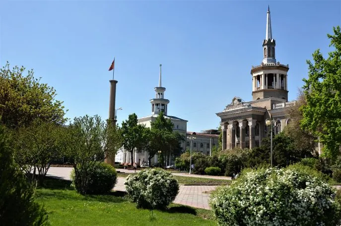 Ein interessantes Überbleibsel der russischen Vergangenheit ist eine blau-weiße Russische Kirche an der Jibek Jolu. Das Museum der Bildenden Künste hat eine Abteilung mit Repliken griechischer, römischer und ägyptischer Statuen, eine mit Teppichen und Wandteppichen, aber die interessanteste Abteilung ist die mit Gemälden. Der Osh-Bazar ist der größte des Landes und ein besonderer Ort, um die Kirgisen bei ihren Tätigkeiten zu beobachten.
