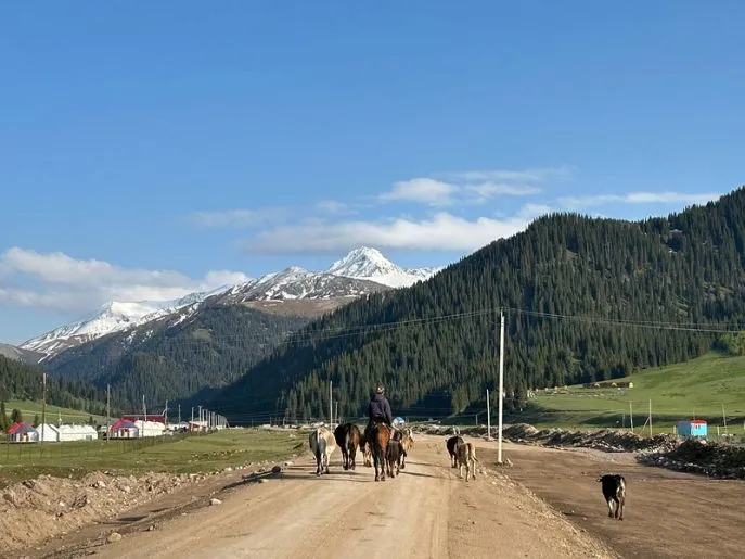 Dieses Tal dient auch als Ausgangspunkt für Trekkingtouren und Helikopterflüge zu den Bergregionen des Tien Shan (Kan Tengri / Pik Pobeda und der Inylcheck-Gletscher).